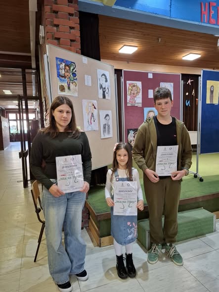 1. место Дуња Маслаћ 8-3 2. место Тијана Гардић 1-2 2. место Димитрије Обрадовић 8-4 3. место Елена Станисављевић 8-4 Честитамо награђеним ученицима, учитељици Вери Вукајловић и наставницима ликовне културе Ани Шумаревић и Владимиру Антићу